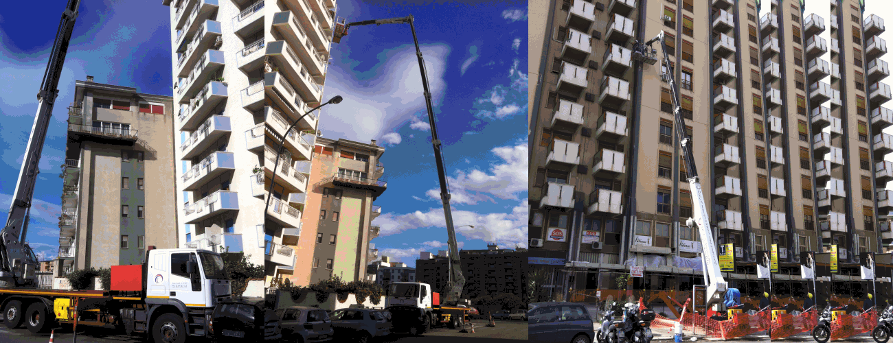 Servizi di ristrutturazione condomini, manutenzione e tinteggiatura facciate, impermeabilizzazioni e trattamento ferri tramite sabbiatura, pulizia scritte con possibilità di operare in spazi molto ristretti grazie ai nostri mezzi speciali.